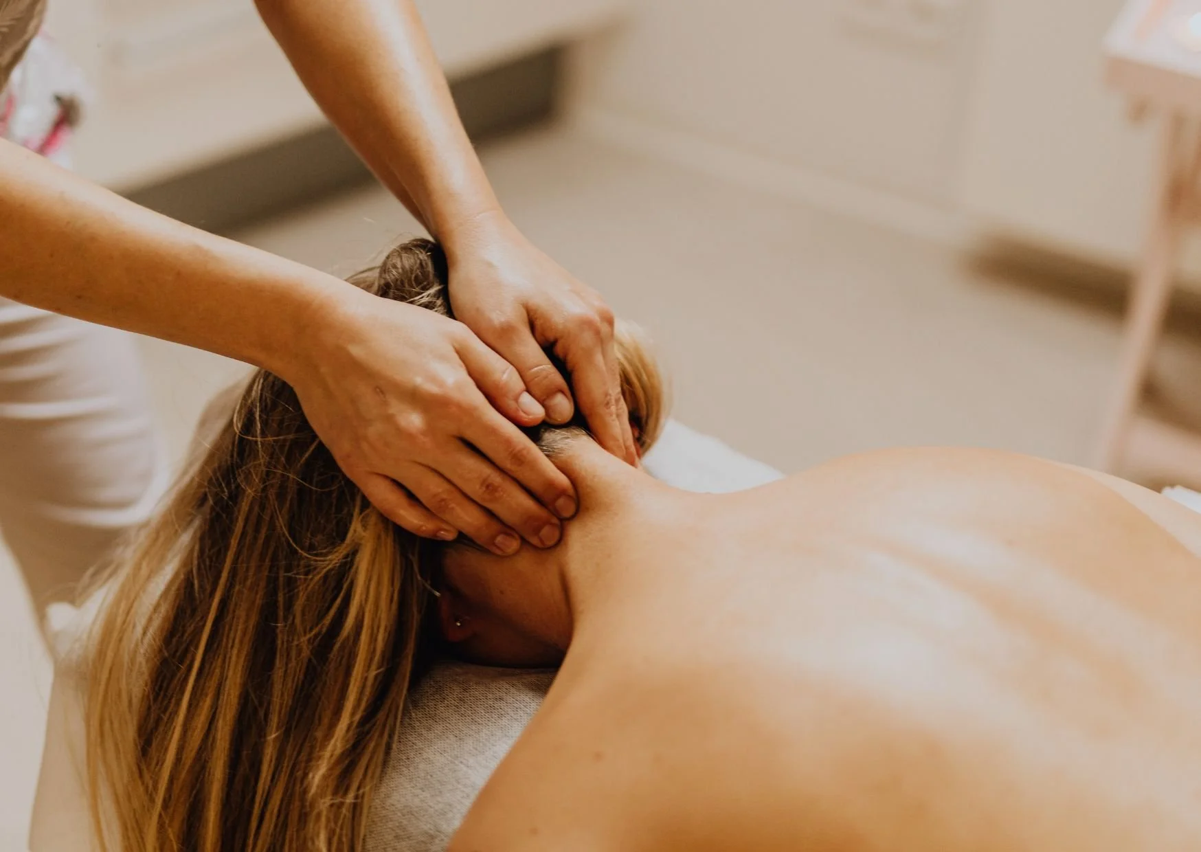 A combination of massage and acupressure techniques to the upper back, shoulders, arms, neck, scalp, and face.